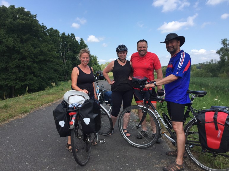 Tyle razy mijaliśmy się na trasie. Przywitaliśmy się z uśmiechami na twarzy. Okazało się, że Martina i Udo mieszkali w Kilonii i byli pasjonatami rowerkowania. Ponadto, Udo był znanym dziennikarzem w niemieckiej telewizji ARD. Potem wyliczyliśmy, ile to razy spotykaliśmy się po trasie. Opowiedzieli nam o swoich rowerowych wojażach, a my o naszym rowerkowaniu. Nie wiadomo kiedy, minęło 40 minut. Martina i Udo kończyli w Schwedt, zatem to był ostatni moment by podać sobie dłonie. Pozdrawiamy Was i do zobaczenia na trasie!!!