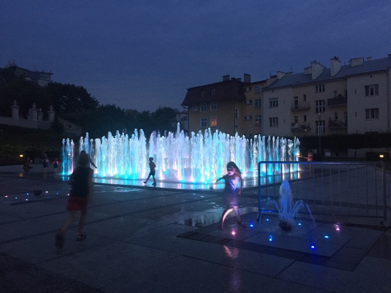 Co warto zobaczyć w Rzeszowie? Każdy znajdzie coś dla siebie. My też znaleźliśmy, choć w upale nie było to łatwe zadanie. Na koniec postanowiliśmy zobaczyć fontannę multimedialną, obok zamku. Niestety, chyba ktoś nie opłacił jakowegoś media i pokaz odbył się w zupełnej ciszy, ale światełka podziałały na nas odprężająco.