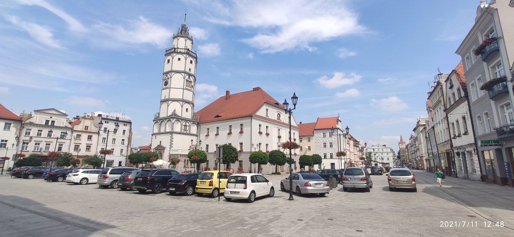 W Paczkowie od razu do oczu cisną się wielkie mury obronne. Nie spowolniły naszego jednak przejazdu. Wjechaliśmy zatem do miasta dumnie i obowiązkowo stanęliśmy w Rynku, na mały popas. Oczywiście, że w cieniu! Słońce było tego dnia okrutne.