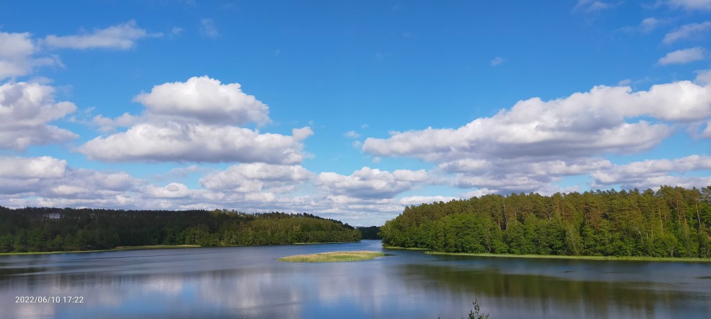 Choć warunki zakwaterowania w drewnianym domku były poniżej norm (mrówki i pająki znacząco podbiły cenę!), to mieliśmy z werandy jeden z najładniejszych widoków na jezioro Dywańskie. Tu była kiedyś granica niemiecko-polska, a teraz mnóstwo wędkarzy i przede wszystkim mieliśmy ciszę.