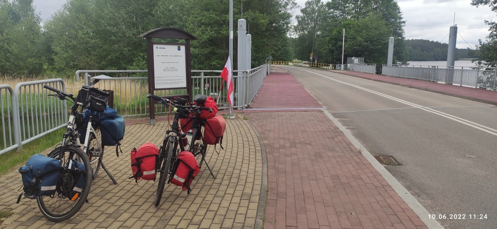 Zaraz za Małymi Swornegaciami dojechaliśmy do zwodzonego mostu nad Brdą. Tak się złożyło, że mieliśmy przejazd. Nawet nie wiedziałem, że czasem można trafić na dwudziestominutową przerwę.