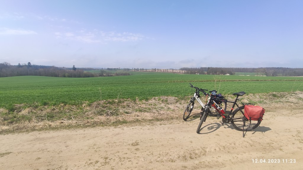 Zjechaliśmy w boczne drogi, coraz słabiej uczęszczane i bardziej piaszczystej nawierzchni. Towarzyszył nam dość charakterystyczny widok rozpadających się pofolwarcznych budynków. Za to wiosenne powietrze orzeźwiało nas dokumentnie.