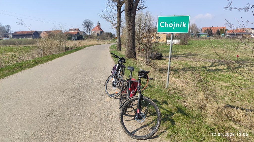 W Chojniku nie było żadnego zamku. Za to trafiliśmy na głośnych rycerzy piwnej imprezy w centrum wsi i trochę potłuczonych butelek. Owi rycerze wyzywali się szpetnie, ale najbardziej od donosicieli. Towarzyszyły im dwie białogłowy, równie bluzgające jak rycerze. Ujechaliśmy parę kilometrów i minął nas policyjny radiowóz . Zapewne w Chojniku doszło do turnieju…