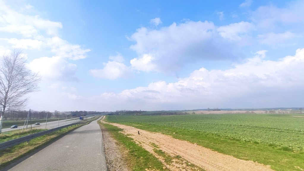 Do Pasłęka jechaliśmy wzdłuż S7. O dziwo, z tej trasy są bardzo dalekie widoki. Na naszej trasie ruch był prawie zerowy.