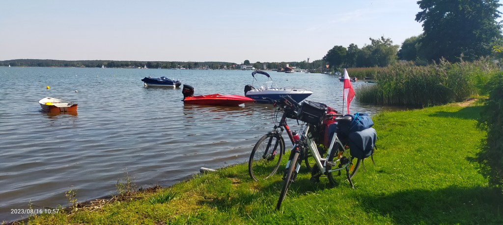 Do Charzykowy pojechaliśmy piękną ścieżką rowerową. Dotarliśmy do południowego brzegu jeziora i stanęliśmy na mały popas.