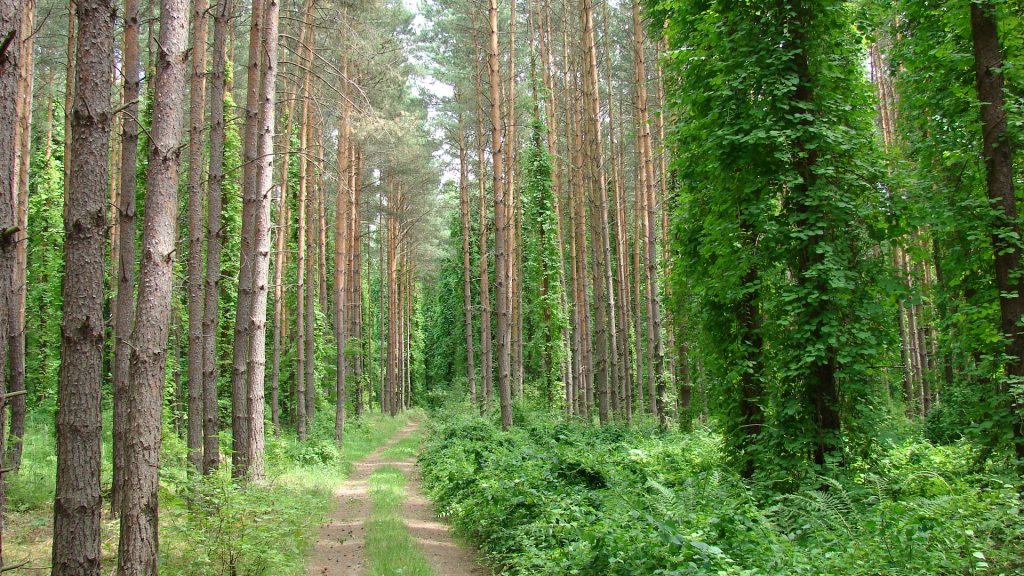 Na parterze lasu rośnie morze bluszczu. Każda sosna, która z tego morza wystrzeliła, jest niemal do samej góry tym bluszczem opleciona. A tak grubo, ze nawet dwóch Ryśków Kaliszów mogłoby za takim drzewem się schować. Tysiące takich drzew, zaraz po wyjściu z betonowego bunkra, zderza się z Twoim umysłem i wywraca go na drugą, tą porządniejszą, stronę. Na dodatek, po naszej prawej i lewej stronie szły równolegle dwie burze a nad nami świeciło …słońce. Dlatego jechaliśmy bardzo powoli, by nie wyprzedzić żadnej z nich i nie wkolebać się w strugi deszczu.