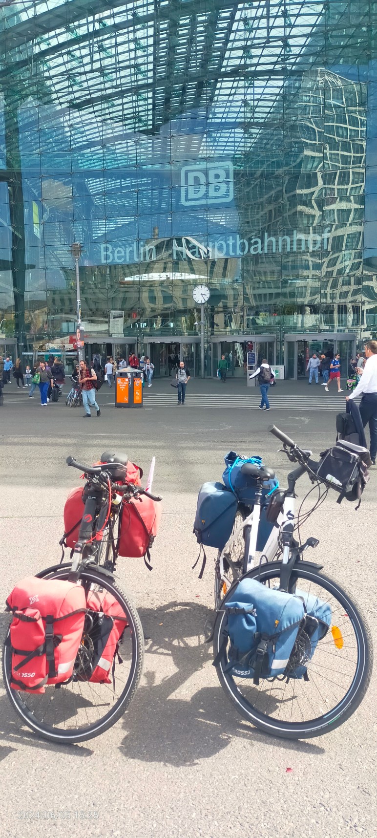 Rowerzystów w bród i duży wybór ścieżek. Na stacji Gesundbrunnen mieliśmy trochę czasu, więc zaobserwowaliśmy różnorodność kulturową, która znacznie się zmieniła od naszej ostatniej wizyty w 2005 r. Niestety na gorsze. Na tyle, że bacznie pilnowaliśmy naszych rowerów i bagażu. A gdy już byliśmy na peronie, podeszła do nas czarnoskóra, młoda kobieta i poprosiła o udostępnienie jej przenośnego hotspotu z mojego telefonu. Gdy odparłem, że nie mamy dostępu do internetu, zdziwiona i dość roszczeniowo zapytała, dlaczego nie mamy internetu, skoro jesteśmy na wycieczce rowerowej? Wyjaśniłem, że tylko przejeżdżamy przez Niemcy, i że od jutra będziemy w Danii, więc niemiecki internet jest nam zbędny. Zrozumiała i poszła zaczepiać innych pasażerów. Nie dociekałem, dlaczego to ona nie posiada niemieckiego internetu…