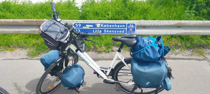 Gdy już myśleliśmy, że jesteśmy w Kopenhadze, nasza ścieżka rowerowa powitała nas bramo-blokadą dla ludzi i zwierząt… gospodarskich. To były metalowe rurki, położone w odstępach w poprzek ścieżki i z pustką poniżej. Ludzie przechodzili i przejeżdżali rowerami swobodnie, a kopytne przejść nie mogły. – Jakież to zwierzęta tu trzymają? – dziwowałem się na głos. No i za chwilę wjechaliśmy w wolno pasące się stado owiec (filmik). Nie bały się nas wcale. Mieliśmy już takie doświadczenia z Polski i Niemiec, ale zaskoczyło nas, że gołym okiem widać było bloki mieszkalne, a obok była też autostrada? No ale czyż nie po to przyjeżdża się do obcych krajów? Dopiero, kiedy wyjechaliśmy przez drugą bramo-blokadę gospodarską, zauważyliśmy drogowskaz dla rowerów. Do Kopenhagi zostało 11 km.