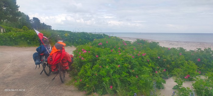 Szczerze pisząc, nie zauważyliśmy żadnej różnicy, między przedmieściami Køge a miejscowościami, które mijaliśmy, aż do samej Kopenhagi. To były same domki jednorodzinne. Ciągnęły się bez żadnych przerw. O tym, czy wjeżdżaliśmy do miejscowości, czy z niej wyjeżdżaliśmy, wiedzieliśmy tylko dzięki znakom drogowym. Nic wyróżniającego się nie było widać i nic nam nie zapadło w pamięć. No chyba tylko to, że te wszystkie domki były puste. Przekonaliśmy się o tym, robiąc sobie przerwę na plaży, podczas której zjadłem wczorajszą i wciąż dobrą pizzę. Wtedy też spostrzegłem, że nie uruchomiłem rejestratora jazdy w mapy.cz. Dlatego obrazek z zapisem śladu jest z Aktywne miasta.