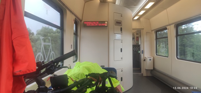Bilety na pociąg do Szczecina, ze względu na opóźnienie promu, kupiliśmy tuż przed zacumowaniem do brzegu. Pociąg Regio był nowoczesny. Albo z Newagu albo z Pesy. Nie pamiętam. Podróż przebiegła nad wyraz przyjemnie. Może też i dlatego, że znów byliśmy w Polsce?