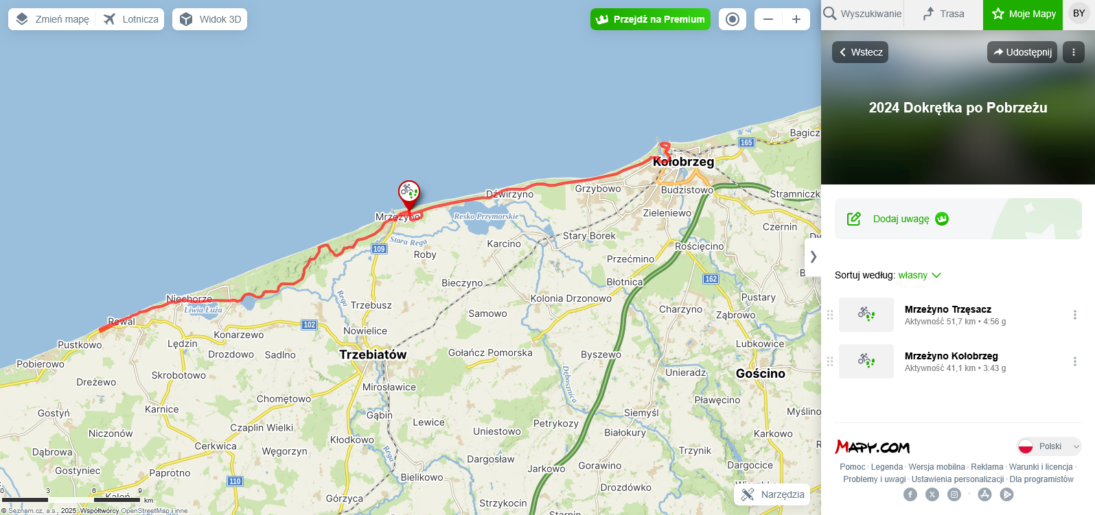 Mrzeżyno – Rogowo – Dźwirzyno – Grzybowo – Kołobrzeg – Grzybowo – Dźwirzyno – Rogowo – Mrzeżyno.