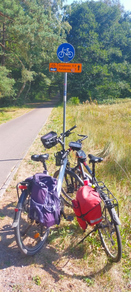 Zanim wyjechaliśmy z Mrzeżyna, pojechaliśmy zobaczyć dawne pole campingowe przy ulicy Letniskowej, na którym kiedyś namiotowo nocowaliśmy. Tego obiektu już nie było. W tym miejscy były ładne domki, basen, jacuzzi i zadbany teren, a obiekt miał w nazwie słowo resort. Przyszło więc nowe. Wróciliśmy do głównej szosy, przy której biegła odrębna ścieżka rowerowa.