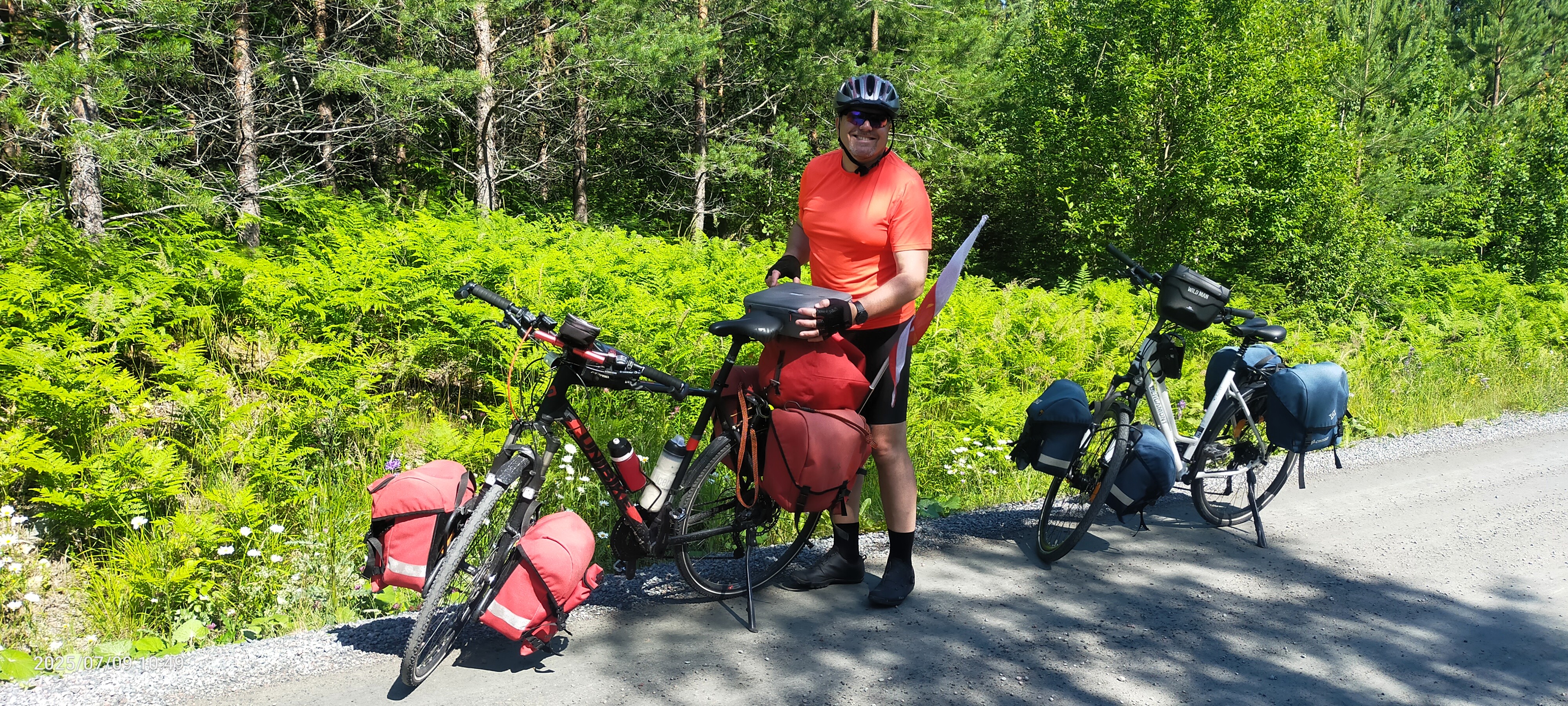 Asfalt mieliśmy aż do Rovsättra. Potem wjechaliśmy na leśną szutrówkę, której jakość nas pozytywnie zaskoczyła. Luźny kamień leżał na środku i poboczach, a ślady były tak twarde jak asfalt. No tak, to można rowerkować po świecie. Nie dość, że słoneczko i cień, wiatru zero, to jeszcze twarda szutrówka. Takie rzeczy to chyba tylko w Szwecji, choć wszędzie jeszcze nie byliśmy.