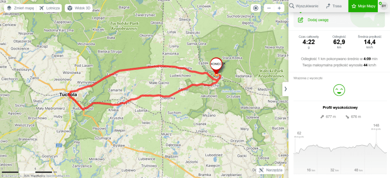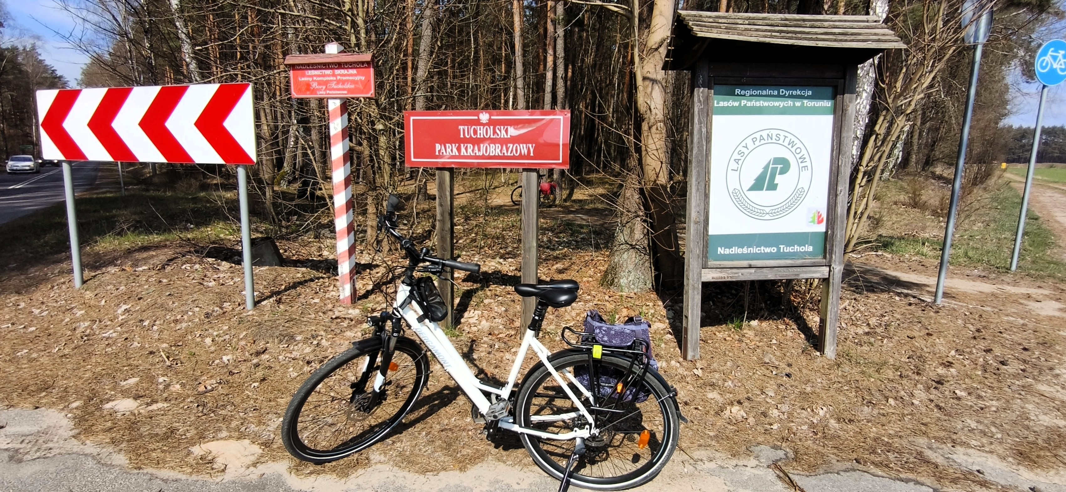 W Cekcynie znów byliśmy na szlaku Tleń – Tuchola i nawet kawałek na szlaku do Piekła… czy jakoś tak. Za Cekcynem wjechaliśmy do Tucholskiego Parku Krajobrazowego i powitała nas utwardzona, szutrowa i piękna ścieżka, wytyczona pomiędzy drzewami. O jakże piękne mogą być chwile…